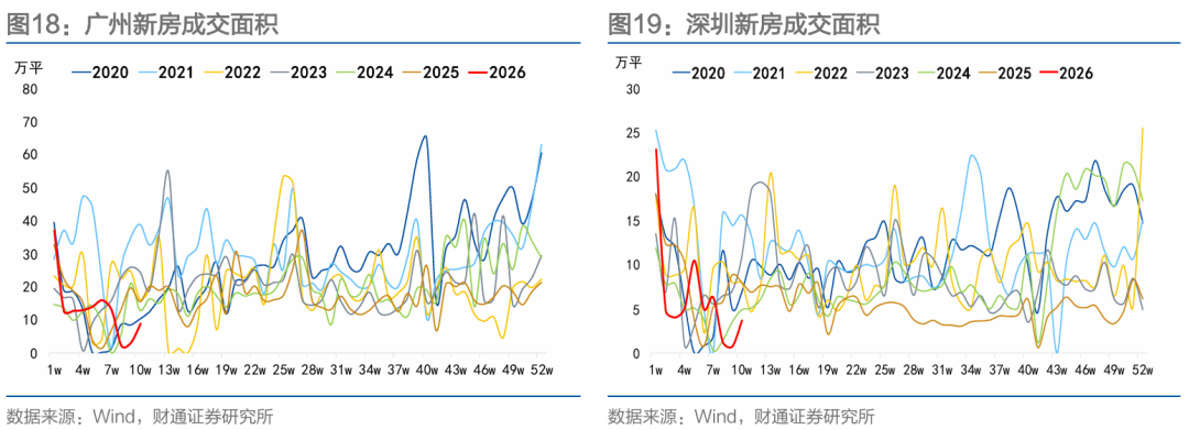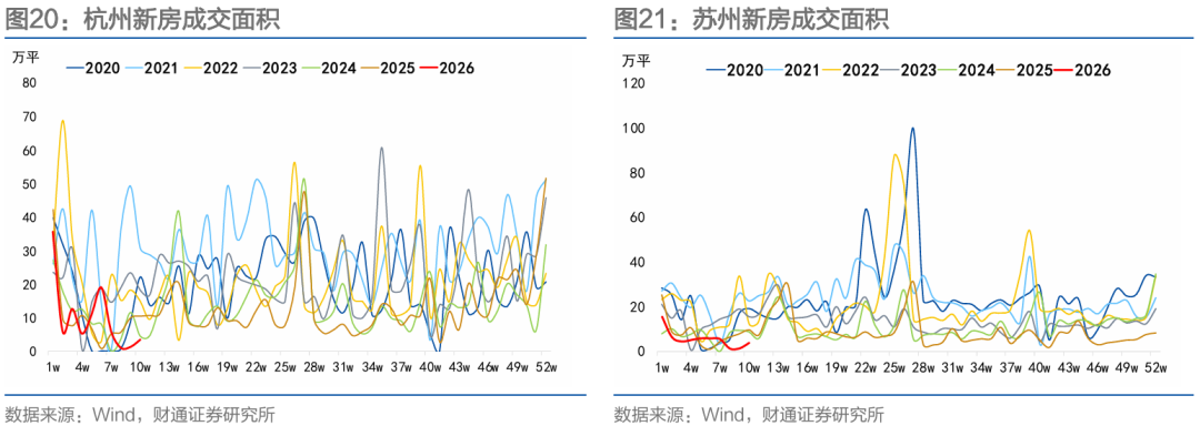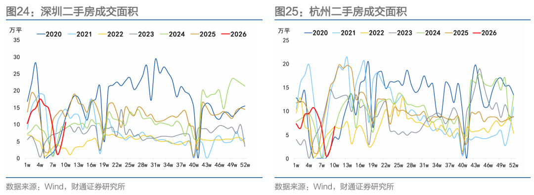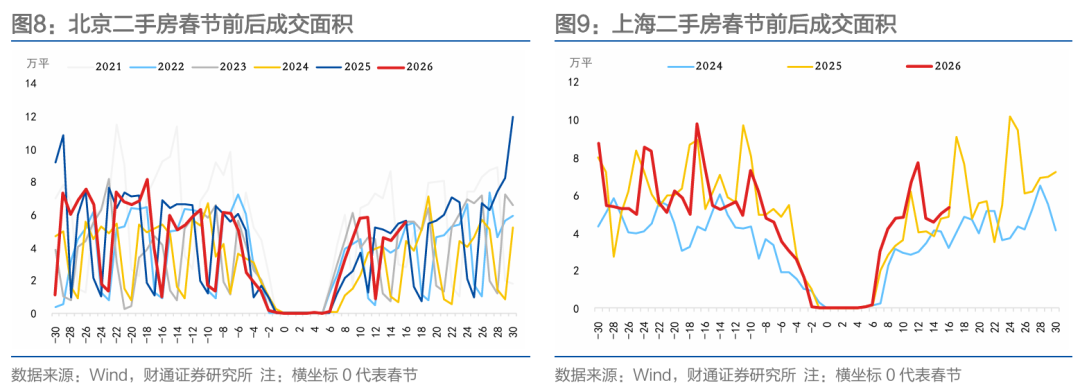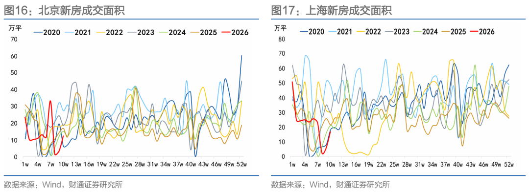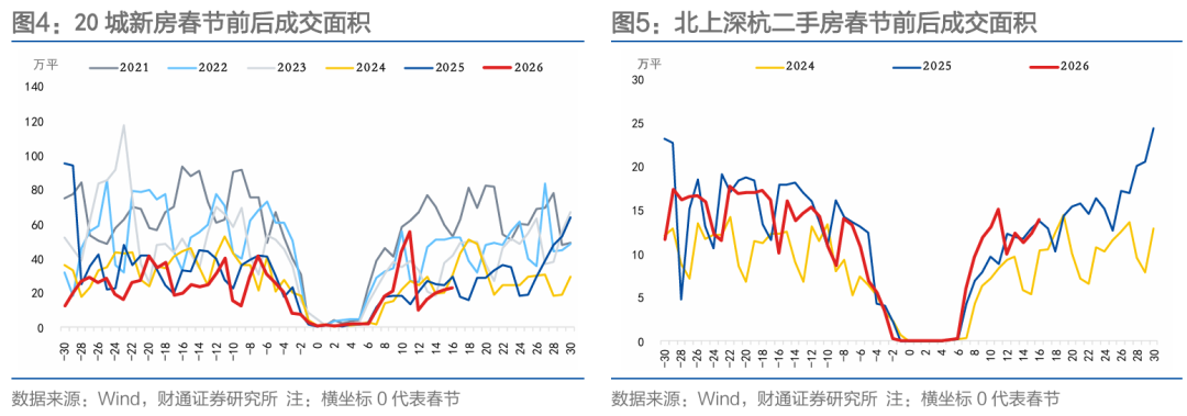节后北上成交表现较强。春节至农历正月十七,20城新房累计成交面积250.35万平方米,同比上升16.24%。二手房方面,春节至农历正月十七,北上深杭二手房累计成交面积116.70万平方米,同比上升15.92%。