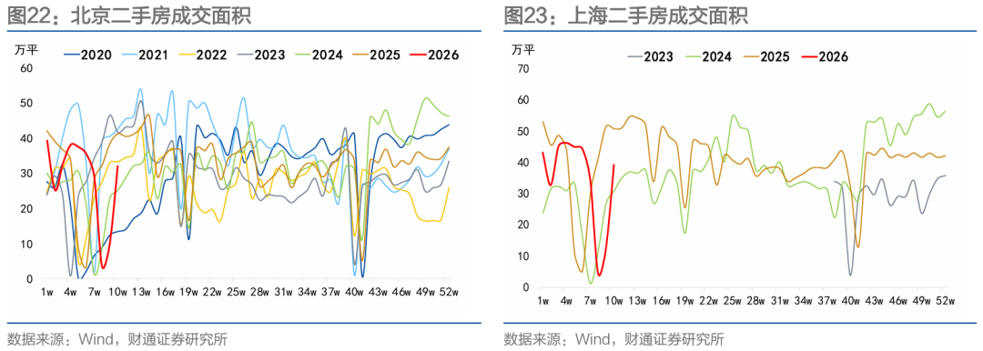 新房方面,春节至农历正月十七,20城新房累计成交面积250.35万平方米,同比上升16.24%。其中,北京新房累计成交面积同比上升44.85%,上海二手房累计成交面积同比上升17.27%。