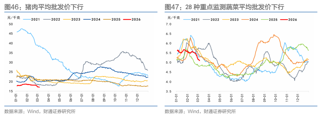 通胀方面,猪肉价格下行、蔬菜价格下行、油价上行。本周蔬菜价格下行,季节性回落,运费端有一定支撑;原油价格大幅上行,中东地缘冲突升级。