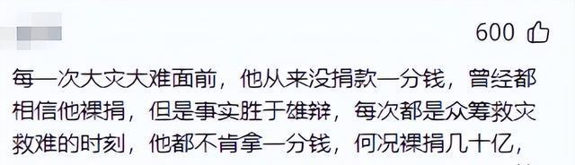 这些年从没出过偷税漏税、耍特权的负面新闻,仅凭一次没公开的捐款和一个被放大的笑脸,就否定他几十年的品行,未免太过片面。